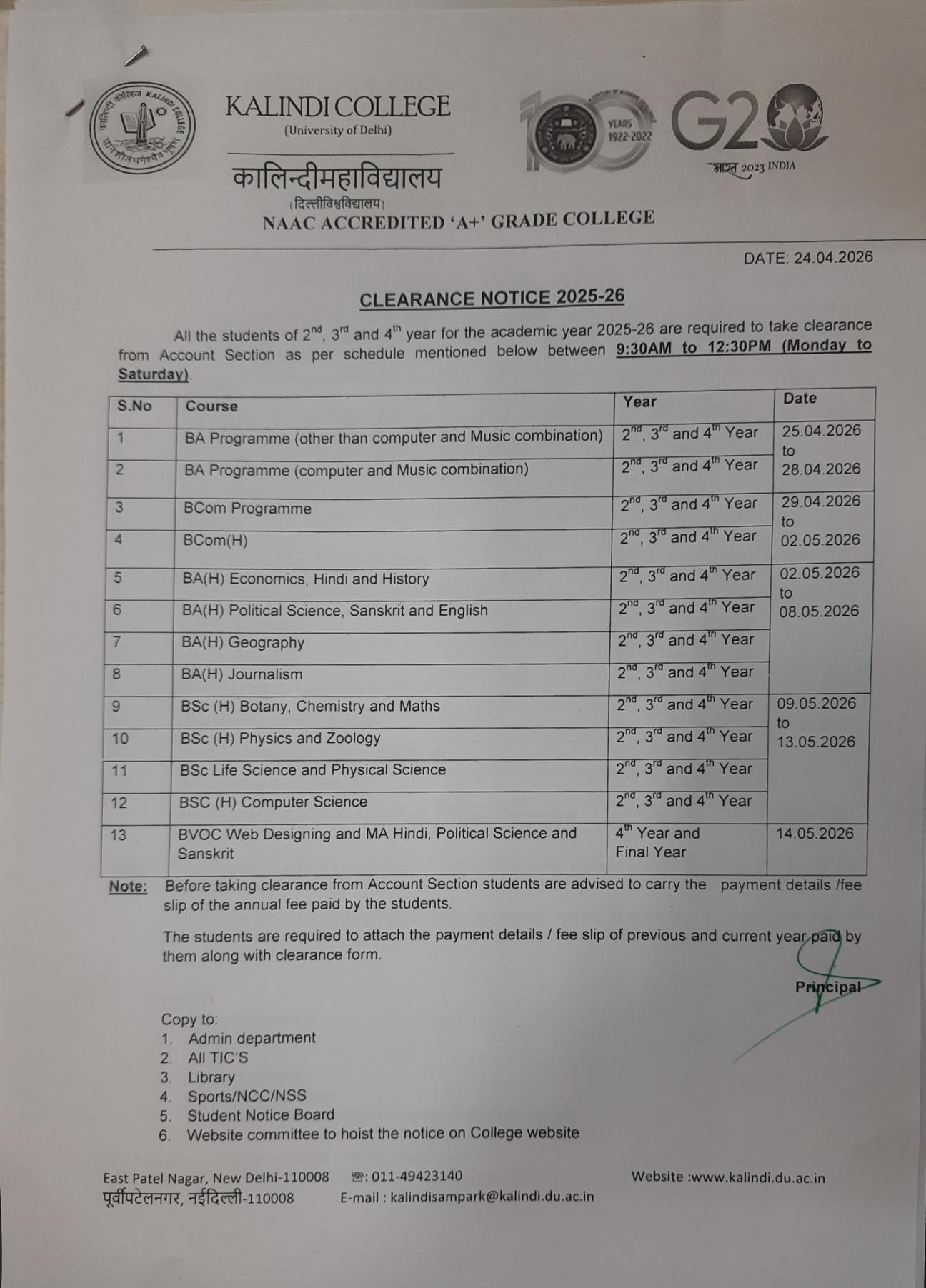 Notice regarding practical exam of B.Com(H) VI Semester on 07.05.2025 in Cyber Center at 9.00 am