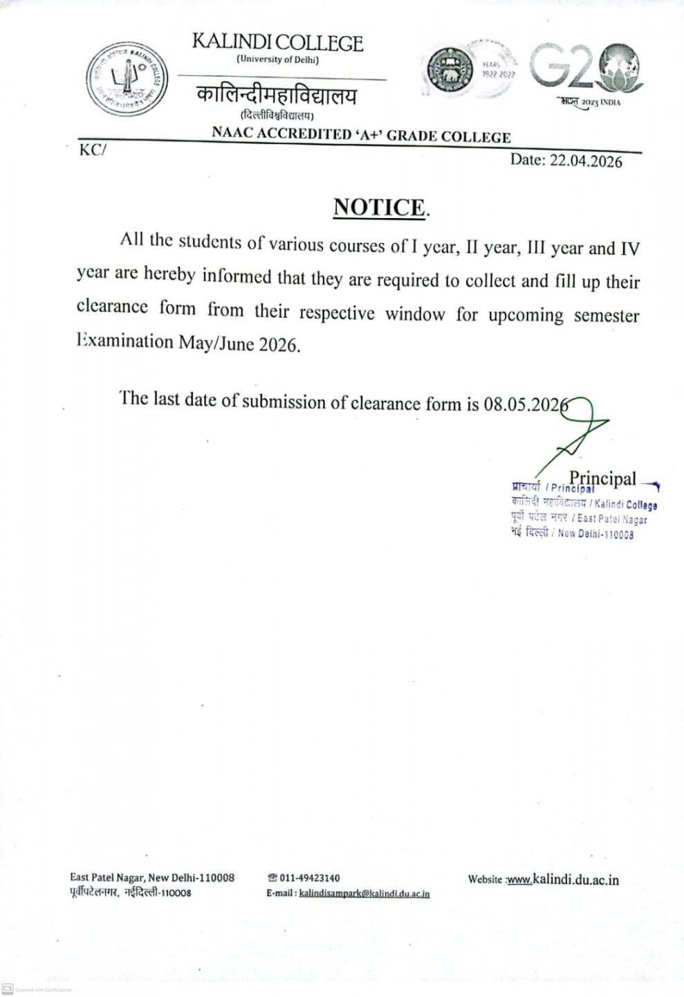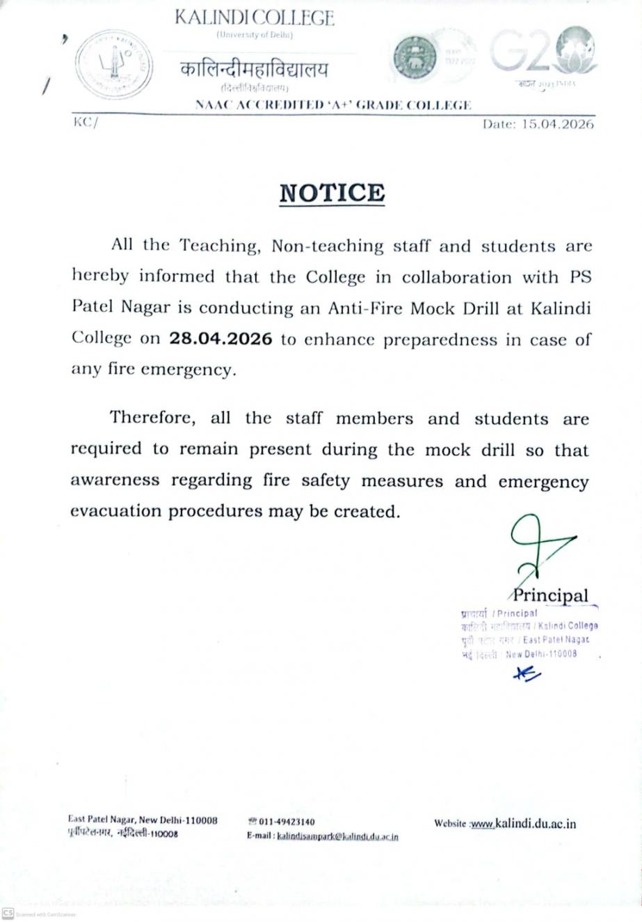 Dear Students! Welcome to Kalindi College. Kalindi College, an institution of academic excellence and achievement, was established in 1967...