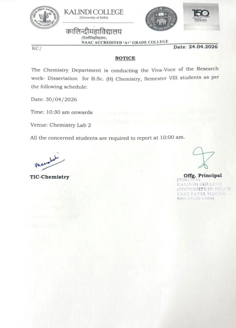 Notice for Viva-Voce Chemistry department