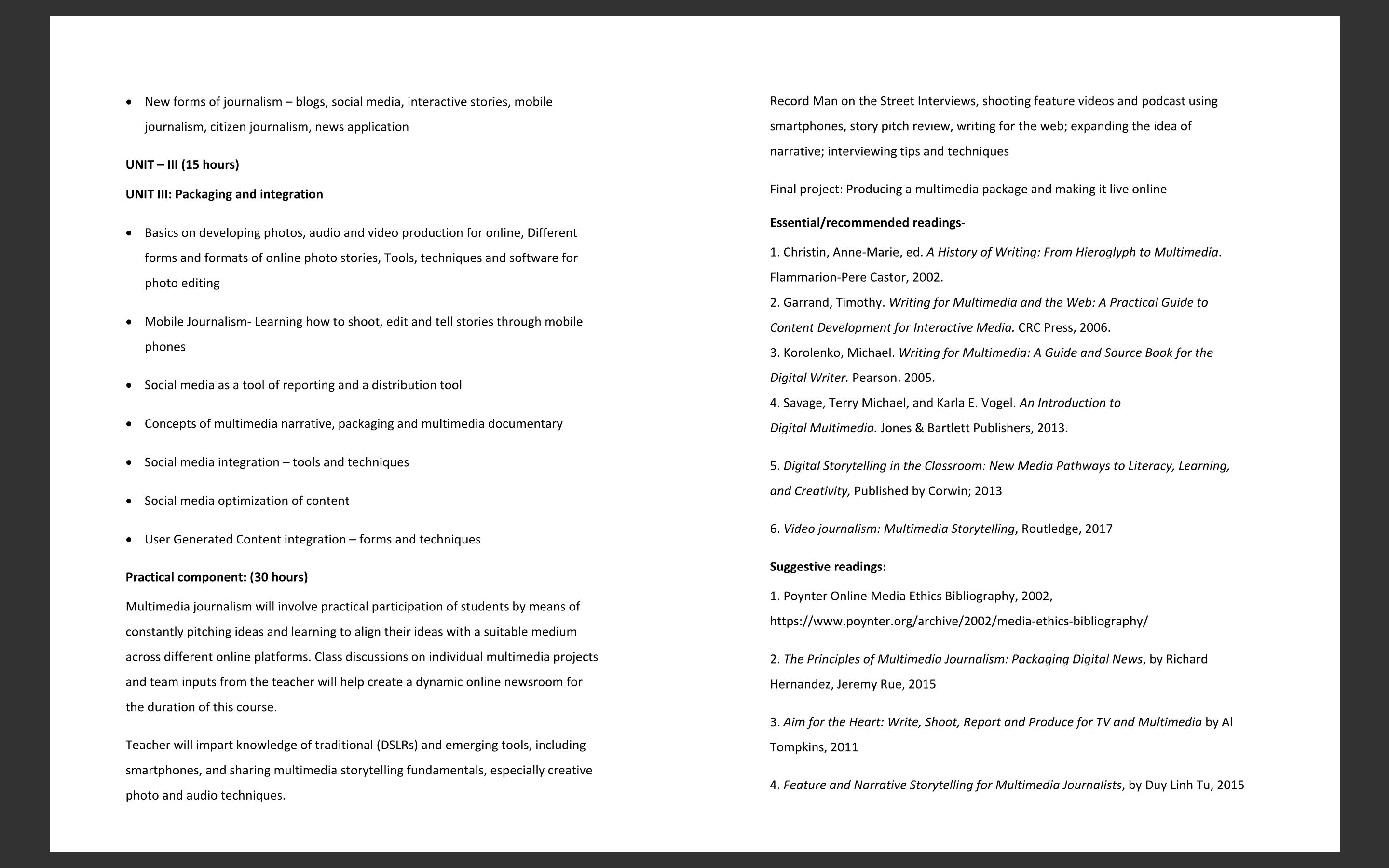| 10. | 4 | Multimedia Journalism | Dr. Aahana B. Chopra | View | View |